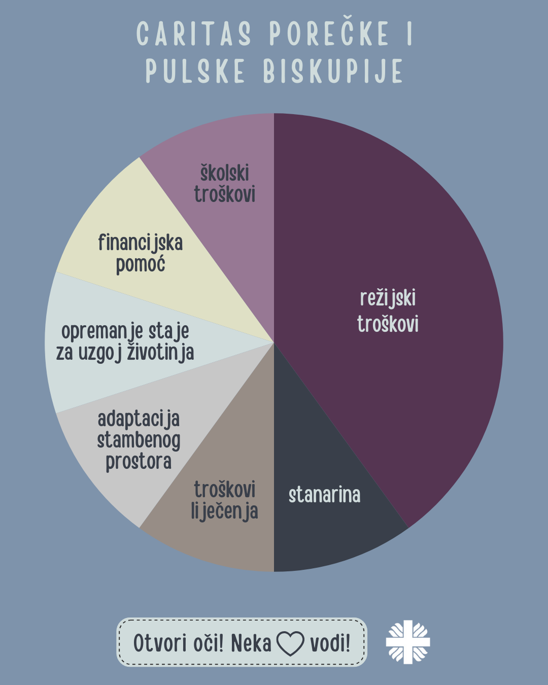 U Porečkoj i Pulskoj biskupiji 4 je obitelji trebalo pomoć za podmirenje režijskih troškova; među njima su dvije jednoroditeljske obitelji (jedna s četvero i jedna s troje djece), jedna peteročlana obitelj i jedan bračni par u kojem je suprug branitelj Domovinskog rata te se nosi s posljedicama PTSP-a. Pružena pomoć osigurala im je pristup osnovnim uvjetima za dostojanstven život.