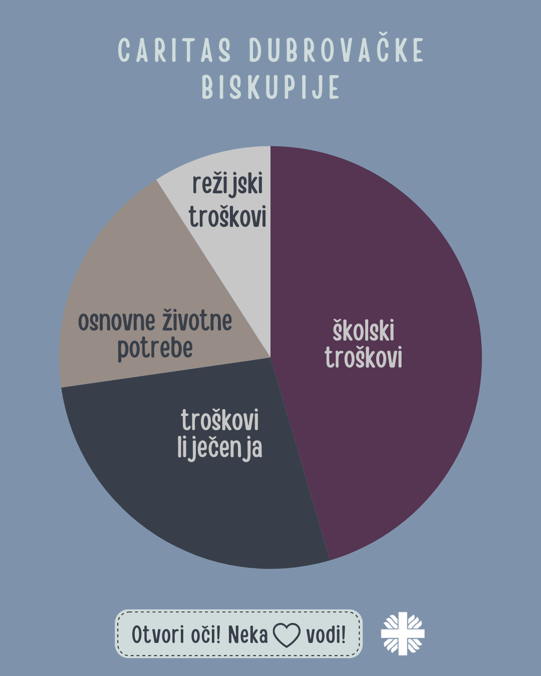 Na području Dubrovačke biskupije također je obiteljima čiji se članovi nose s težim oboljenjima te osobama s invaliditetom pružena pomoć u liječenju, odnosno, nabavi dodatka za invalidska kolica kako bi mogli biti samostalniji. Osobama i obiteljima koje su se zbog raznih životnih okolnosti našle u situaciji da imaju vrlo mala primanja ili ih nemaju uopće pružena je pomoć za podmirenje osnovnih životnih potreba, kao što su režije ili prehrambene i higijenske potrepštine.
