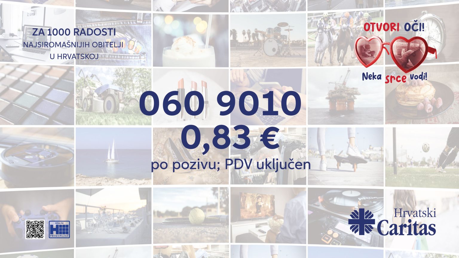 Ovogodišnji humanitarni program Za 1000 radosti provodi se pod sloganom „Otvori oči! Neka srce vodi!“ te nas potiče da otvorimo oči za potrebe drugih i činimo dobra djela. Pojedinci, škole i tvrtke uključili su se u program pozivom na donacijski telefon 060/90-10, novčanim uplatama te sudjelovanjem djece i mladih koji su u školama darovali simbolične priloge za narukvice s prigodnom porukom. Prikupljena pomoć upućena je krajnjim korisnicima, putem Caritasove mreže, u iznosu od 200.000,00 €.