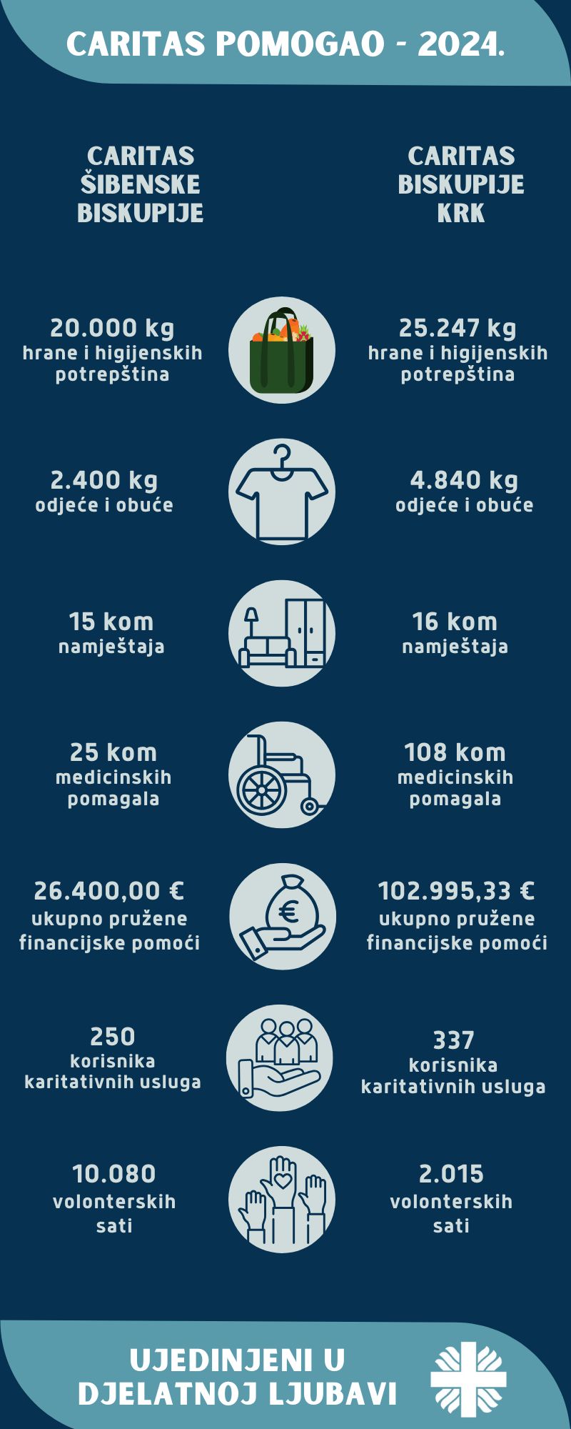 Korisnici ovih vrsta pomoći najčešće su starije i nemoćne osobe, osobe s invaliditetom, osobe koje zbog bolesti nisu u mogućnosti raditi ili obitelji s više djece, a ukupan broj korisnika u Šibenskoj biskupiji tijekom 2024. bio je 250, dok se na području Biskupije Krk taj broj penje na 337 osoba.