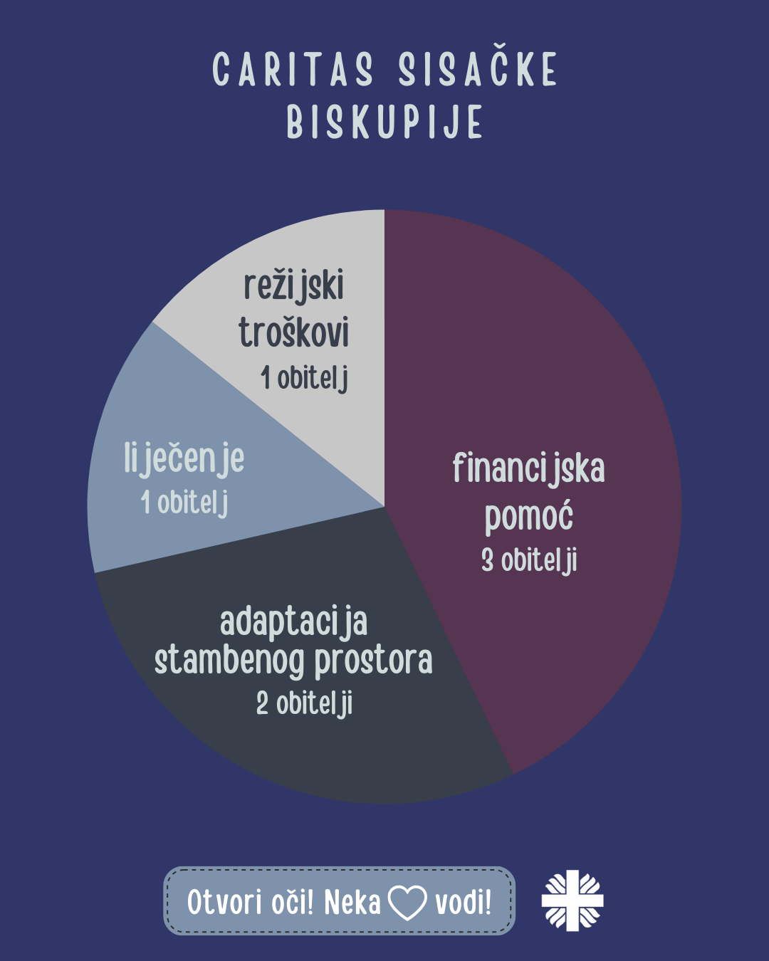 Dvije obitelji našle su se u teškoj životnoj situaciji uslijed onkoloških oboljenja članova tih obitelji te nemogućnosti da rade. Istovremeno troškovi liječenja i terapija rastu, a svakodnevni troškovi poput režija se gomilaju. Caritas Sisačke biskupije pružio je tim obiteljima pomoć kako bi im se bar malo olakšao prolazak kroz teške životne situacije. Jednoj je obitelji pružena pomoć kako bi se deblokirao bankovni račun samohrane majke koja je s dvoje djece stanovala u derutnom prostoru i kojega je trebalo obnoviti, za što majka nije imala mogućnosti zbog blokade računa.