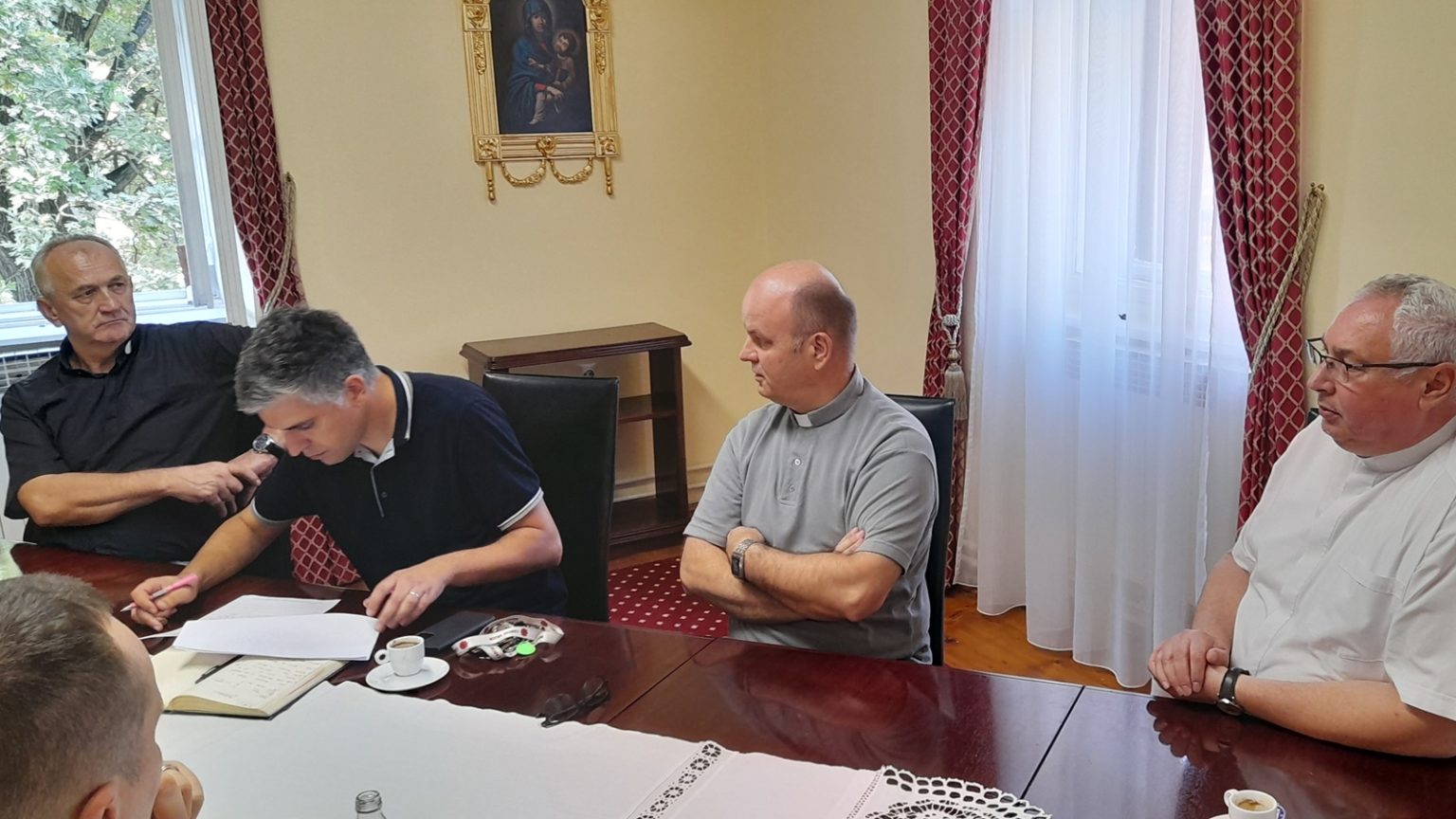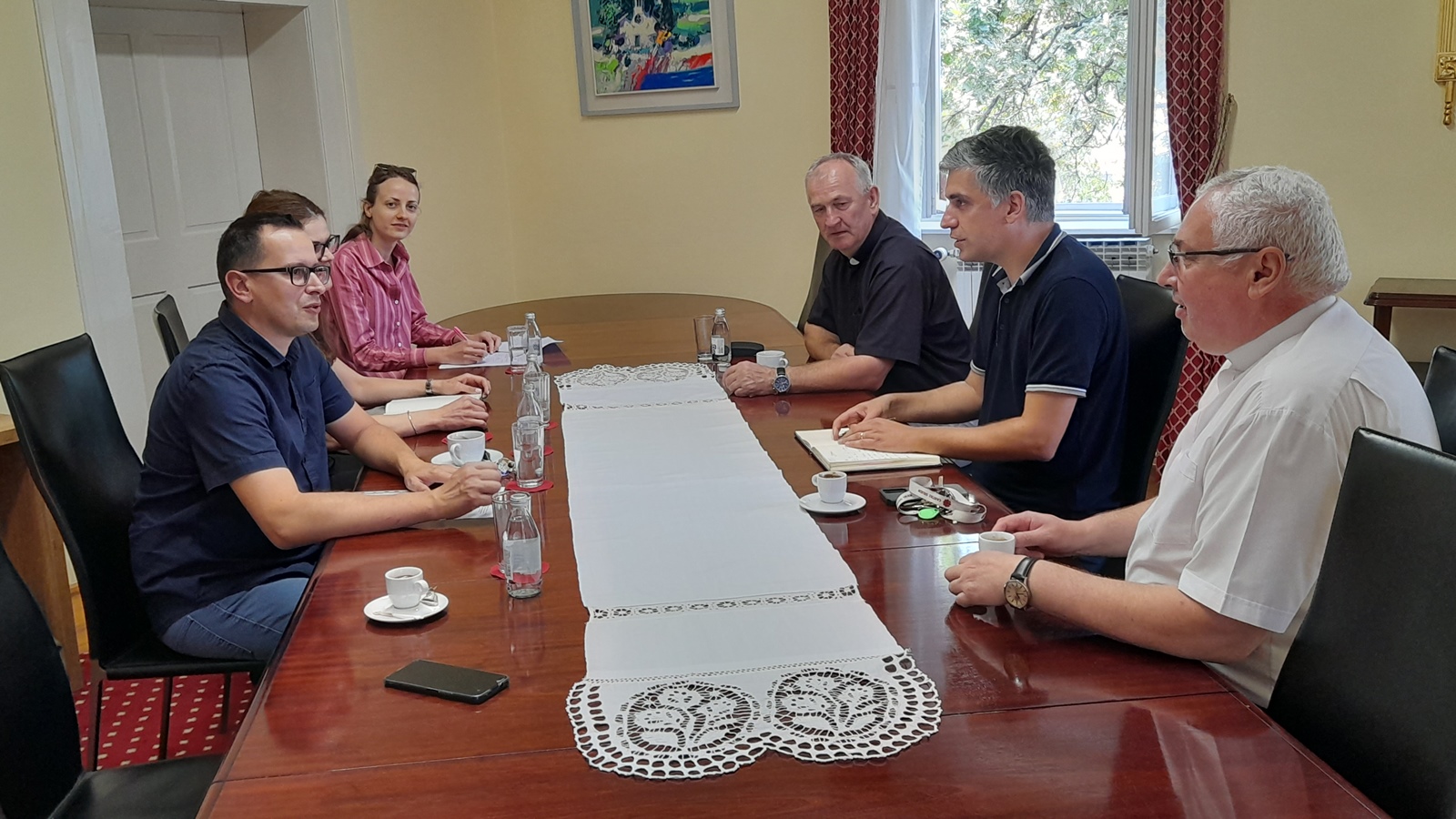 Susret je započeo u Biskupskom ordinarijatu u Srijemskoj Mitrovici, gdje su se susreli sa srijemskim biskupom Fabijanom Svalinom, generalnim vikarom Josipom Ivešićem, te predstavnicima Caritasa Srijemske biskupije Petrom Dujićem, koordinatorom, Sarom Žurovski i Ilijom Nanićem, djelatnicima Caritasa Srijemske biskupije.