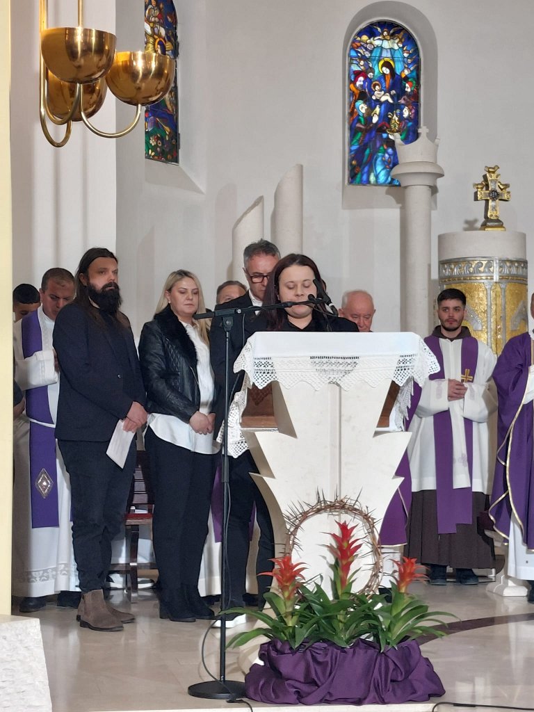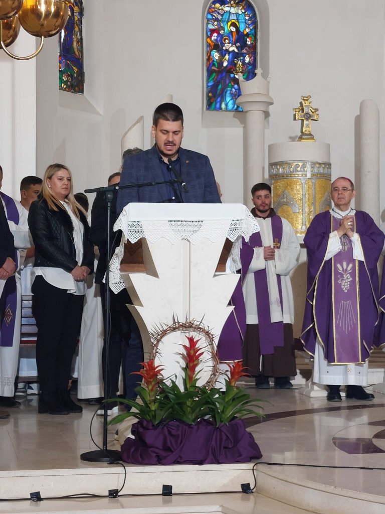 “Danas cijela naša crkvu u Hrvatskoj misli, moli i osjeća žeđ ovoga naroda. Nismo ravnodušni i ne možemo biti jer to nije kršćanski stav… Želimo imati ruku dobrote koja je ruka dobrote kao što je to Božja ruka koja iz sebe, iz svoga izvora, daje drugima. Danas želimo moliti za ovu Crkvu i za sve ljude u BiH. Ne samo kršćane, vjernike, nego za svakog čovjeka, da skinemo onu zavjesu koja nas priječi od drugih kao što to čini Isus. Molimo za obitelji koji u tišini nose svoje križeve. Molimo za starce koji su ostali ovdje čuvati ognjišta kako bi se djeca mogla vraćati na njih. Molimo za mlade koji traže razlog da ovdje ostanu i da ono što vole nikada ne napuste, nego da traže ovdje prostor svoga života. Molimo za sve župne zajednice, danas posebno za ovu, da pod suncem teških kušnji čuvaju vjeru, dostojanstvo, ono blago koje se čuva u srcu i daruje se drugima. Molimo danas Gospodina da osjetimo da netko pripada nama i da mi pripadamo njemu onako kako je to osjetila Samarijanka i kako je Isus osjetio da ona pripada njemu i da on pripada njoj. Želimo biti blizu onima koji su naši. Ta blizina nije samo ljudska blizina, nego nas obvezuje Onaj koji se u nama nastanio. ‘Ako danas glas mu čujemo, ne budimo srca tvrda.’ Otvorimo ga, barem malu pukotinu da poteče iz njega plodna voda”, pozvao je vjernike biskup Radoš te je poželio da Gospodin “po nama čini dobra djela, posebno onima koje vidimo da su potrebi.”